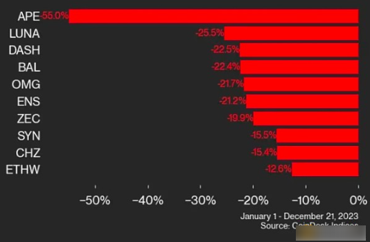 ApeCoin、Luna、DASH、BAL、OMG、ZEC 是 2023 年 CMI 的最大输家