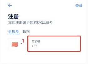 打开欧易OKXAPP,点击页面上方登录/注册按钮,进入登录页面,点击右上角注册,进入注册页面。