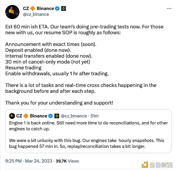 CZ:现货交易预计60分钟可恢复 作者:资讯 •更新时间:2026-01-03 17:17:53•阅读 1193 CZ在其社交平台表示,现货交易预计 60 分钟可恢复,团队正在进行交易前测试。4本文内容由互联网用户自发贡献,该文观点仅代表作者本人。本站仅提供信息存储空间服务,不拥有所有权,不承担相关法律责任。