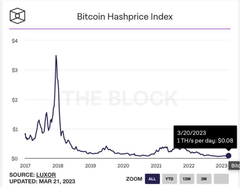 以效率较好的比特币矿机S19XP来看,目前每度的利润约落在$0.156,毛利率已攀升至61.5%。在此背景下,ASIC的矿机市场自2021年12月以来首次在今年1月下旬开始走高。根据运行ASIC交易台的Luxor的数据,过去两个月中,效率最高的机器价格上涨了9%。
