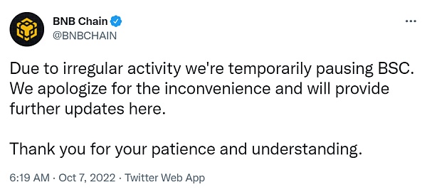本次攻击事件的黑客地址曾与多个 DApp 交互,包括 Multichain、Venus Protocol、Alpaca Finance、Stargate、Curve、Uniswap、Trader JOE、PancakeSwap、SushiSwap 等。此外,黑客转移至以太坊上的 480 万 USDT 已被 Tether 列入黑名单,AVAX 上的 170 万 USDT 已被列入黑名单,Arbitrum 上的 200 万枚 USDT 已被列入黑名单。而由于 BNB Chain 的及时暂停,黑客在 BSC 上的超 4.1 亿美元已无法转移。10 月 8 日,黑客地址转移约 33,771 枚 ETH 至 0xFA0a3 开头的新地址,约合 4,500 万美元。