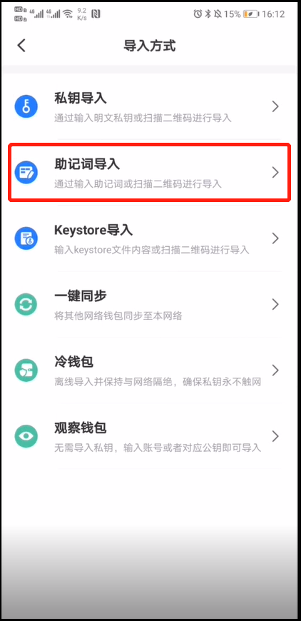 7.使用助记词导入
