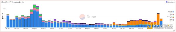 机遇 1. 宏观市场及行情改善市值和交易量目前集中在以太坊上,与以太坊市场情况及加密货币市场整体走势高度相关。随着加密货币市场情况不断改善,市场预计随之回暖。尽管市场在下个牛市到来前还将持续震荡筑底,但市场已经经历过2022年的各种大跌行情,蓝筹项目的生命力在各种危机后愈加显得健壮,Yuga Labs和其他蓝筹项目方给社区带来的各种新活动和新预期,也预计会给行业持续带来新的叙事。