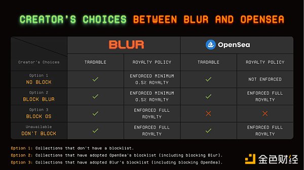 (1)选择一:不采用OpenSea黑名单工具的新合集,Blur对这类新执行最低0.5%的版税保护;