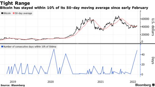 但是结合往年数据来看,尽管最近出现了上涨,比特币已经连续49个交易日在关键趋势线(过去50天的平均价格)的10%范围内波动,这是自2020年7月以来持续时间最长的一次。