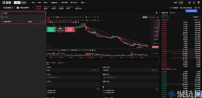 3、点击交易对后会出现交易界面,根据需求购买和交易ERN币