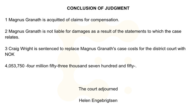 澳本聪需向Magnus Granath支付4,053,750挪威克朗(约合383,000美元)的诉讼费用。