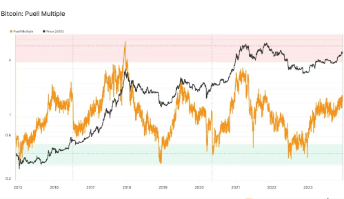 根据Glassnode追踪的数据,截至发稿时,普尔倍数为1.53,远低于4以上的危险区域。